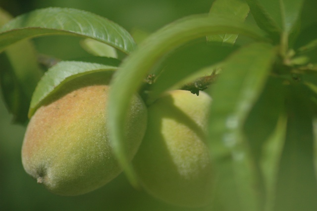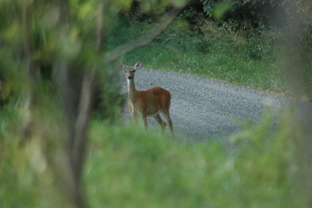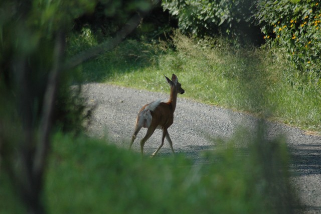 Raven and I took a walk down by the gas well to check on some of the fruit trees, and while the apples and peaches are coming along nicely, there aren’t any plums hanging on… a bit of a disappointment. As we were walking down the hill, we noticed that someone else was also checking the on the fruit.
