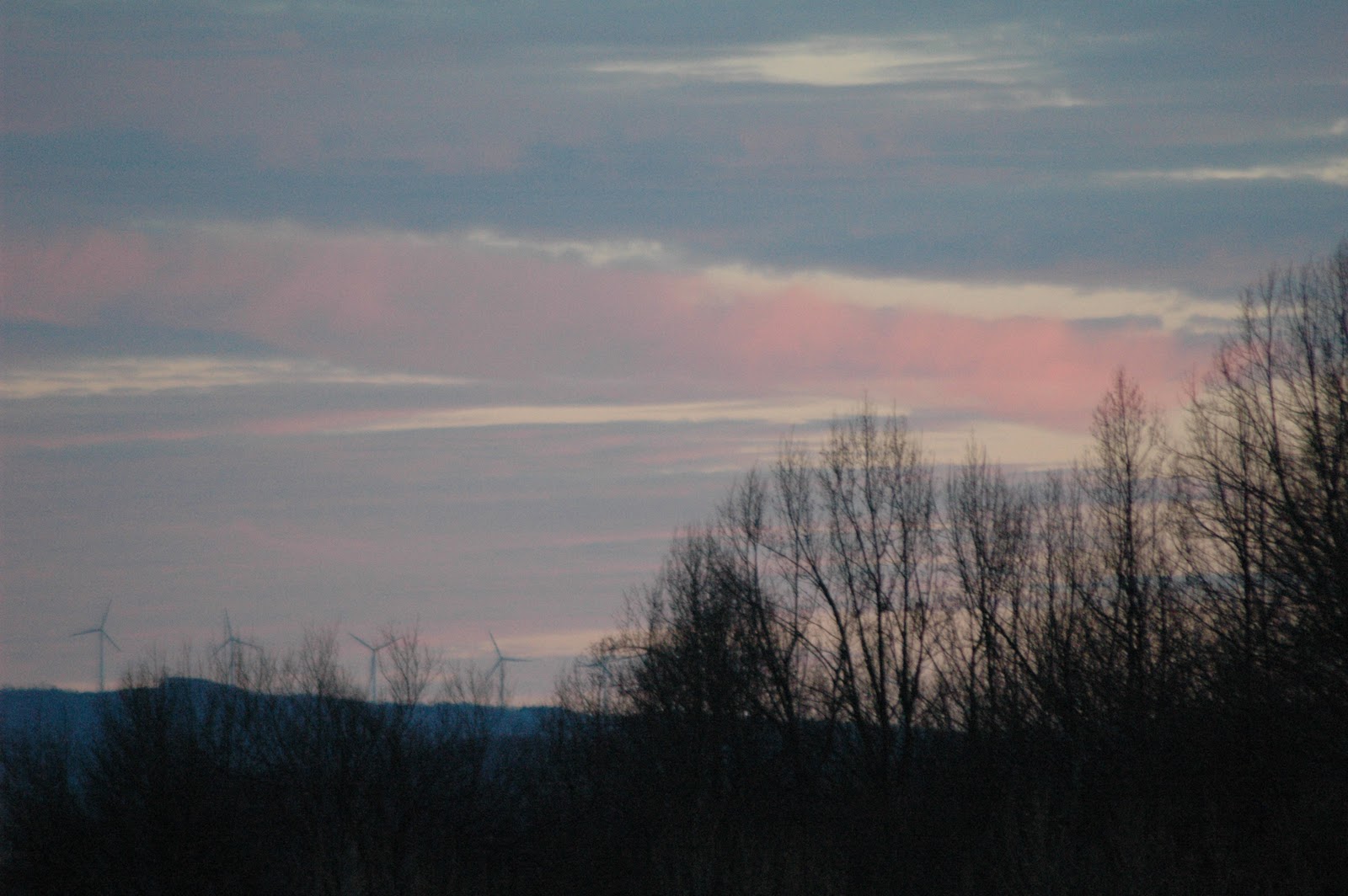 It has been raining or drizzling almost steadily for the past two days, and there is a winter storm warning of 4 -6 inches of snow for the next 36 hours. Let’s ignore all of that… here are Sunday’s Clouds. The morning dawned sunny and quite beautiful. It seemed that every direction you looked there were lovely cloud formations – each quite different each quite lovely. These are not the big white, puffy clouds of a summer day. These clouds are dense but fraying at the edges, wispy, scattered, small white kernels of cloud – the clouds of deep fall.