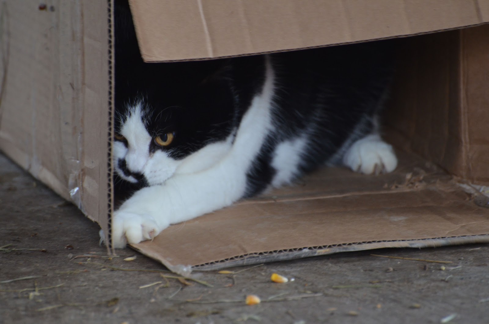 This post has been in the works all week, and we’ve really struggled to get it done. We had one almost spring-like day, but much of the week has looked like this. Much like Bella, we’ve been plodding along. The bred ewes are devouring 200 – 250 pounds of hay a day, cleaning up every last, little bit. The hogget ewes are growing out and have been very entertaining of late when we arrive to feed. Running through the snow, jumping up and down, they bring a smile and sometimes we can’t help but laugh out loud. And, of course that brings us to the barn cats. They are always eager to provide entertainment. The latest toy has been a discarded box that has received so much cat love, we’re reluctant to throw it away.