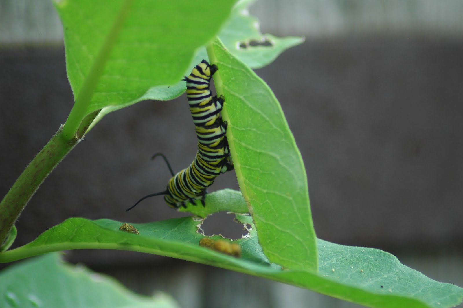 We always let a few milkweed plants continue to grow around the house so that we get the chance to watch these caterpillars. We find it fascinating to see how much they eat and how fast they grow. It won’t be long until this one finds a sturdy twig, begins pupation and forms its chrysalis.