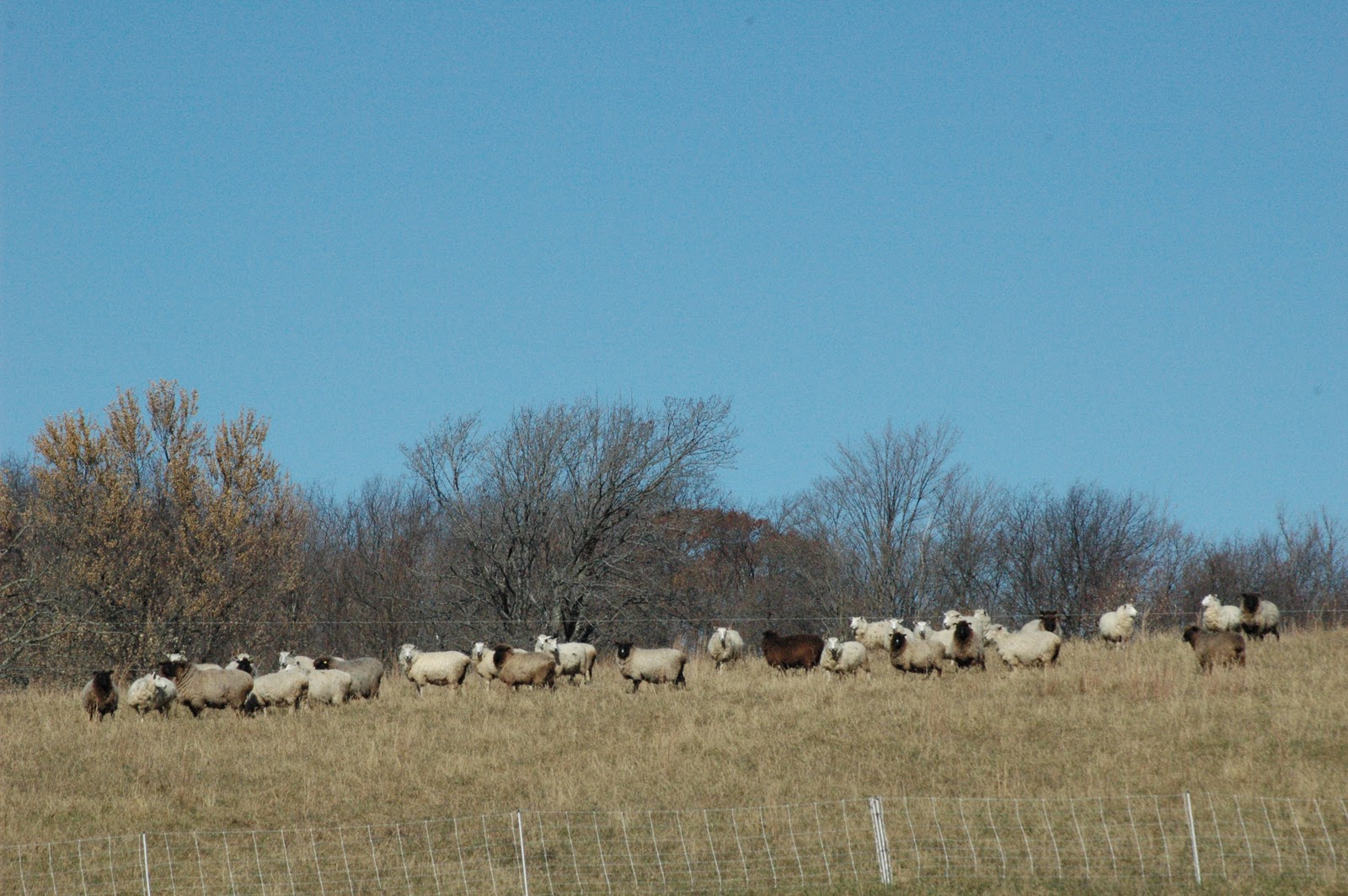 The breeding ewes have spent the last six weeks or so in one of the hayfields, giving some of the pasture paddocks a rest. They spend the day in temporary fencing, coming inside the pine grove paddock’s perimeter fencing at night. We have moved the large temporary paddock twice which has allowed the ewes to graze a large portion of the hayfield. We have followed this plan for a couple years and it seems to have really improved the hayfield along with eliminating many of the weed problems.