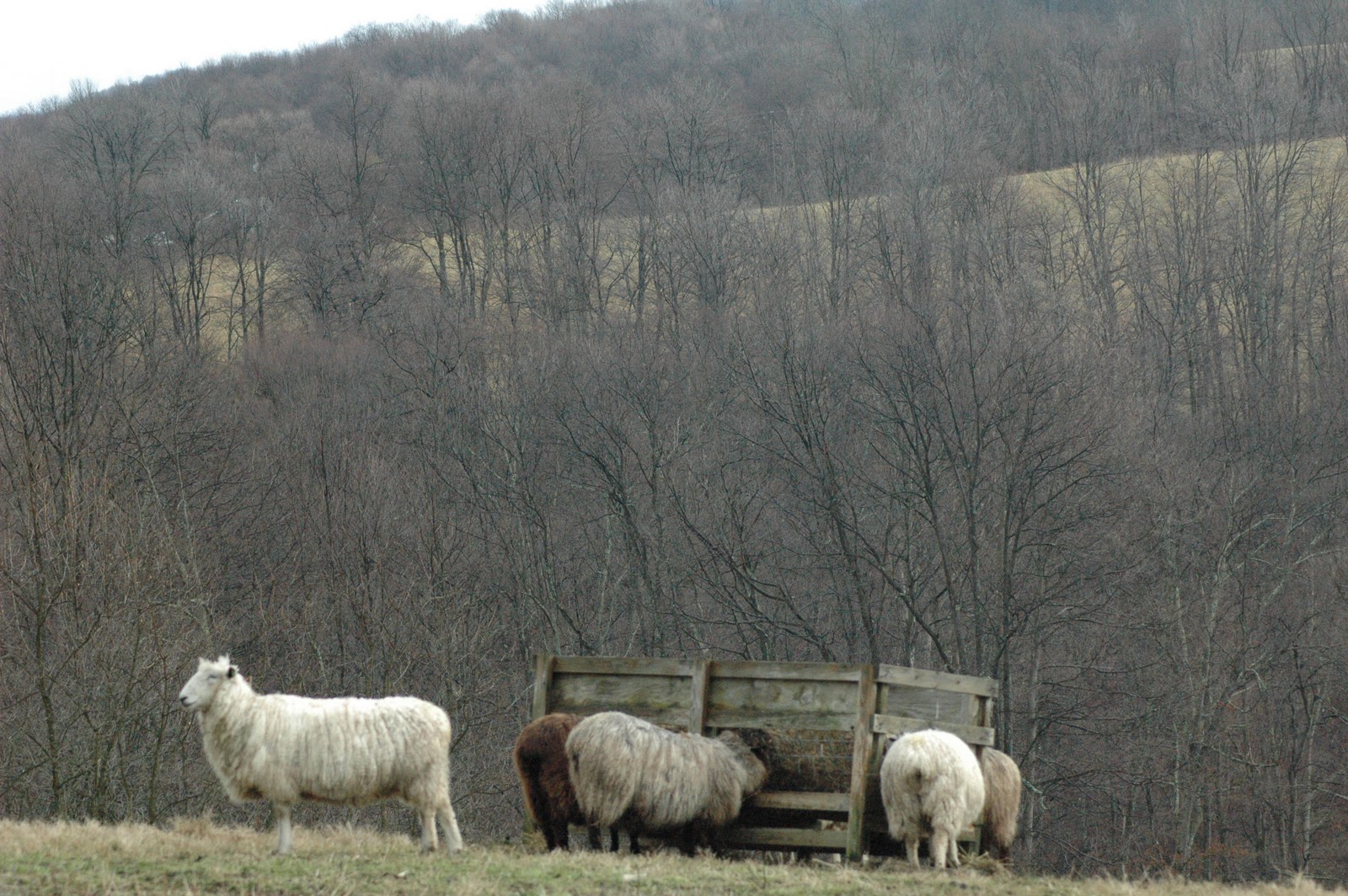 Before the snow, we broke up the breeding groups and moved all the ewes back to the granddaddy green paddock at the barn. This will make morning chores much easier througout the winter. We penned Poseidon and Aragorn in a small space in the barn for about 24 hours and then moved them to the paddock behind the house. We’ve done this for several years and it seems to significantly lessen their aggressive behavior once they are removed from the ewes. We left the older ram, Liam, in with the group at the barn so that we can sneak him a little grain and carrots.