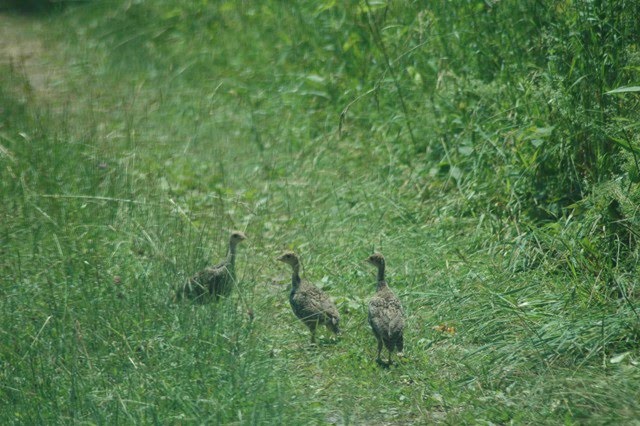 We had to suddenly stop the Ranger because of these baby turkeys (poults) in the lane.